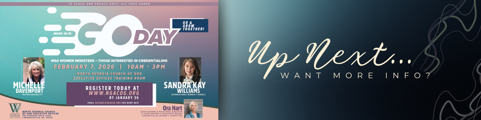The Church of God in North Georgia is a Spirit-led movement committed to the authority of God’s Word and the mandate of the Great Commission. We are a diverse and unified body, passionate about Pentecostal worship, empowered by the Holy Spirit, and dedicated to raising up disciples who impact their communities with love and truth. Centered on Christ and guided by compassion, we exist to nurture local churches, equip leaders, and remain relevant to each generation while standing firm on timeless truth.
